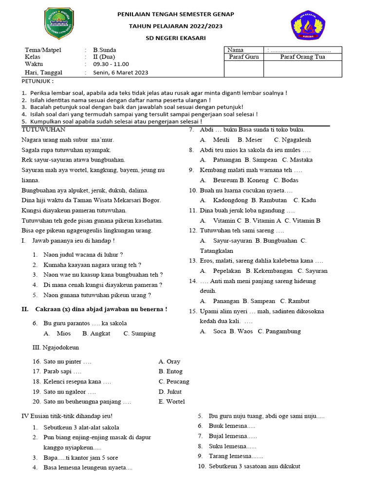 Artikel ini akan mengupas tuntas seluk-beluk soal UTS Basa Sunda kelas 2 semester 2. Mulai dari pentingnya pembelajaran bahasa Sunda, materi pokok yang biasa diujikan, bentuk-bentuk soal yang umum muncul, hingga tips persiapan efektif bagi siswa, peran orang tua dalam mendukung, dan saran bagi para guru dalam menyusun soal. Tujuannya adalah memberikan panduan komprehensif agar semua pihak siap menghadapi UTS Basa Sunda dengan percaya diri dan hasil yang optimal.